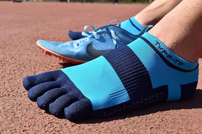 五本指ソックスは、一本一本指を自由に使えるので地面を掴んで力強く蹴り出せます。無駄なエネルギーを回避したスムーズな蹴り出しによって、高い推進力が得られるでしょう。