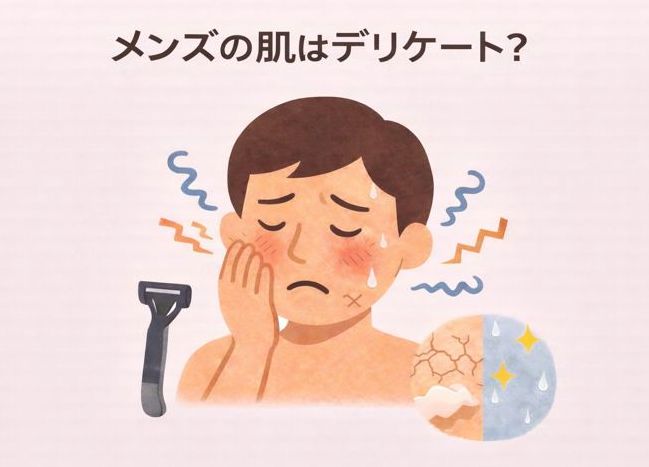 敏感肌とは、肌のバリア機能が弱まり、外部刺激に反応しやすい状態を指します。男性の場合は髭剃りの刺激、皮脂の酸化、乾燥などによる影響を受けやすく、普段から肌を守るケアが重要です。