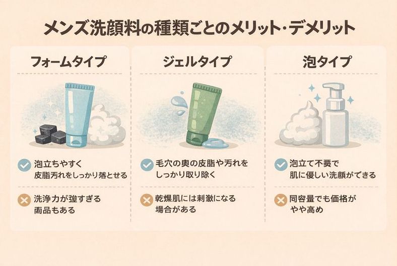 メンズ洗顔料の種類ごとのメリット・デメリット