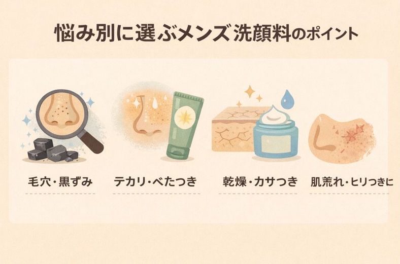 悩み別に選ぶメンズ洗顔料のポイント