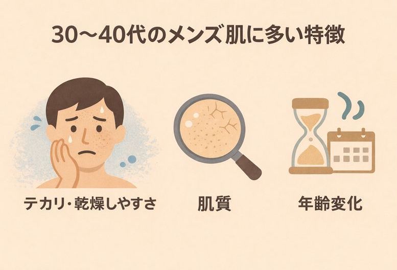 30代は皮脂分泌が多く、テカりや毛穴詰まりが気になりやすいのが特徴。その一方で、乾燥が徐々に目立ち始める時期でもあります。