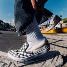 VANSのスリッポンのルーツは、1977年に誕生した「Vans #98」というモデルです。シンプルかつスタイリッシュなフォルムは、スケートボーダーやBMXライダーを中心に人気が広がり、南カリフォルニアで話題となりました。