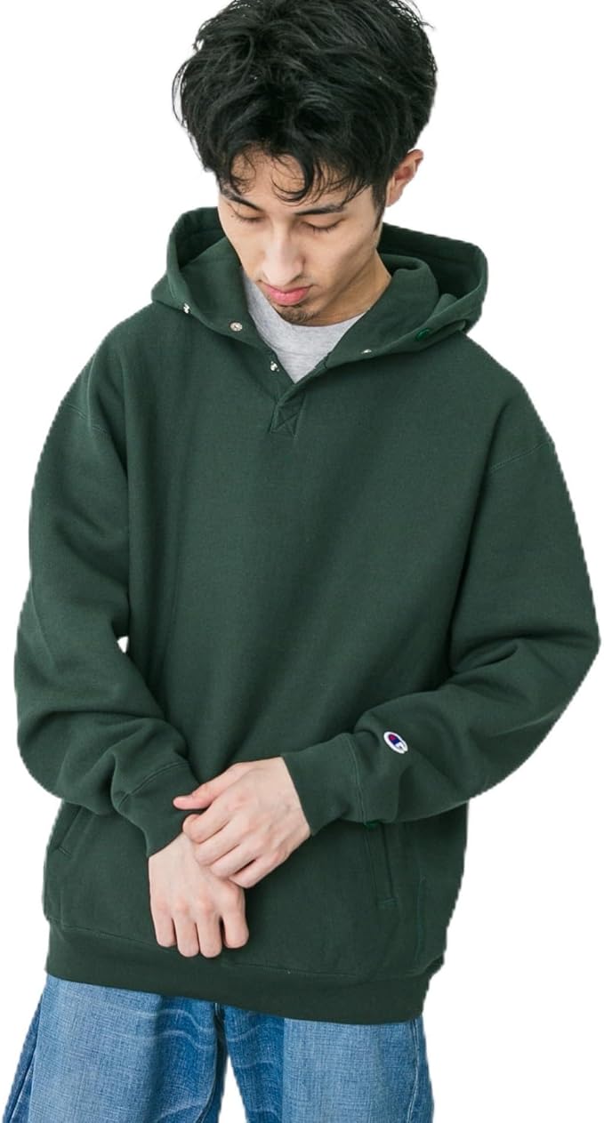 アメリカの老舗ブランドである「チャンピオン」に別注した、プルオーバータイプのリバースウィーブフーディー。綿にポリエステルを混合しているので、軽くて速乾性が高いうえ丈夫なのが特徴。また、裏起毛なので暖かく、春秋にはアウターとして、真冬はミドルウェアとして、長いシーズン活躍してくれます。
