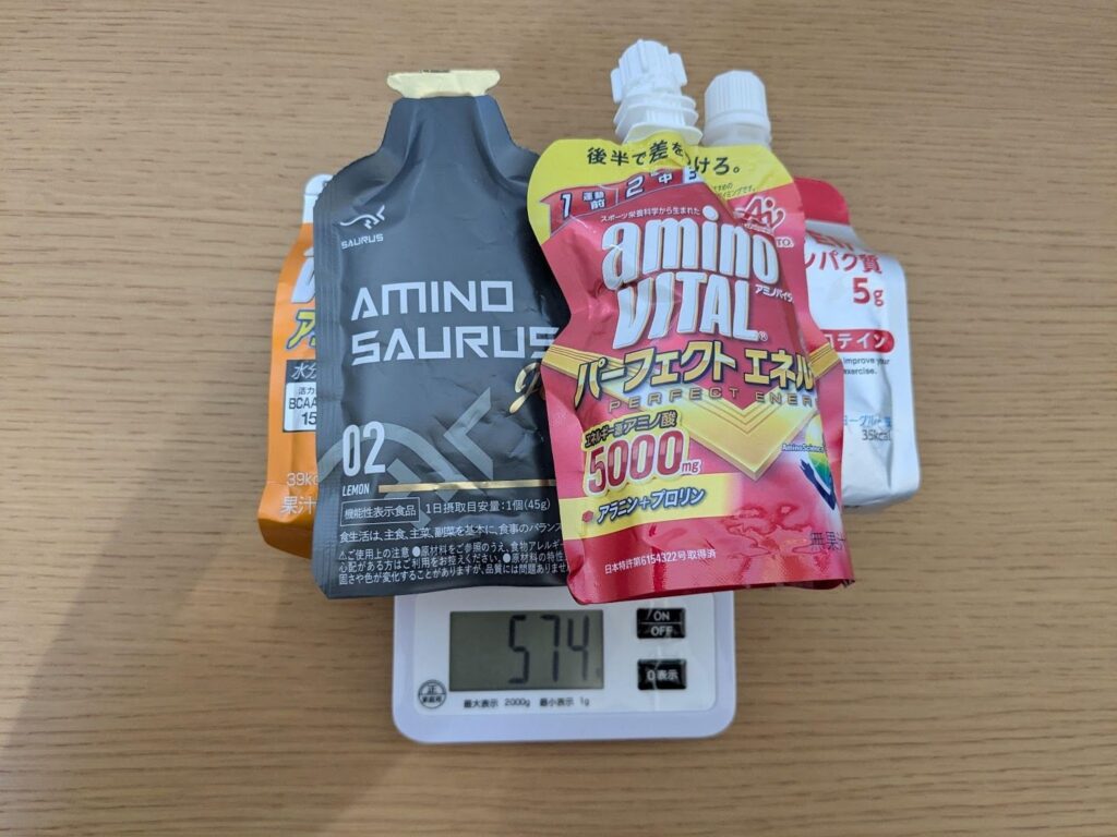 実際にどの程度の量のジェルを収納して快適に走れるか検証したところ筆者の場合は、574gでした。これ以上重くなると、揺れや違和感を覚えてストレスを感じました。