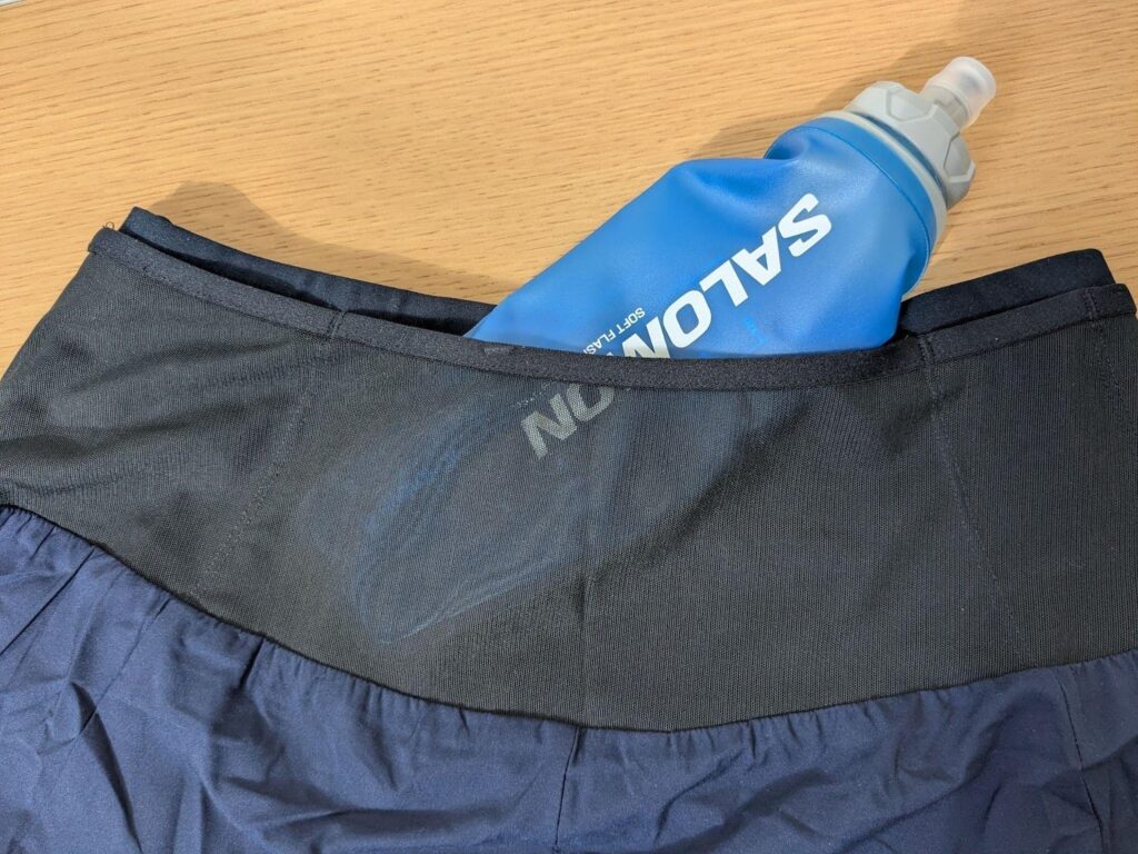 サイドポケットであれば、ランニング中でもスムーズにアイテムを収納することが可能です。使用済みのジェルを一時的に収納する際に便利で、1秒も無駄にしたくないレースでの手間やストレスの軽減につながりました。