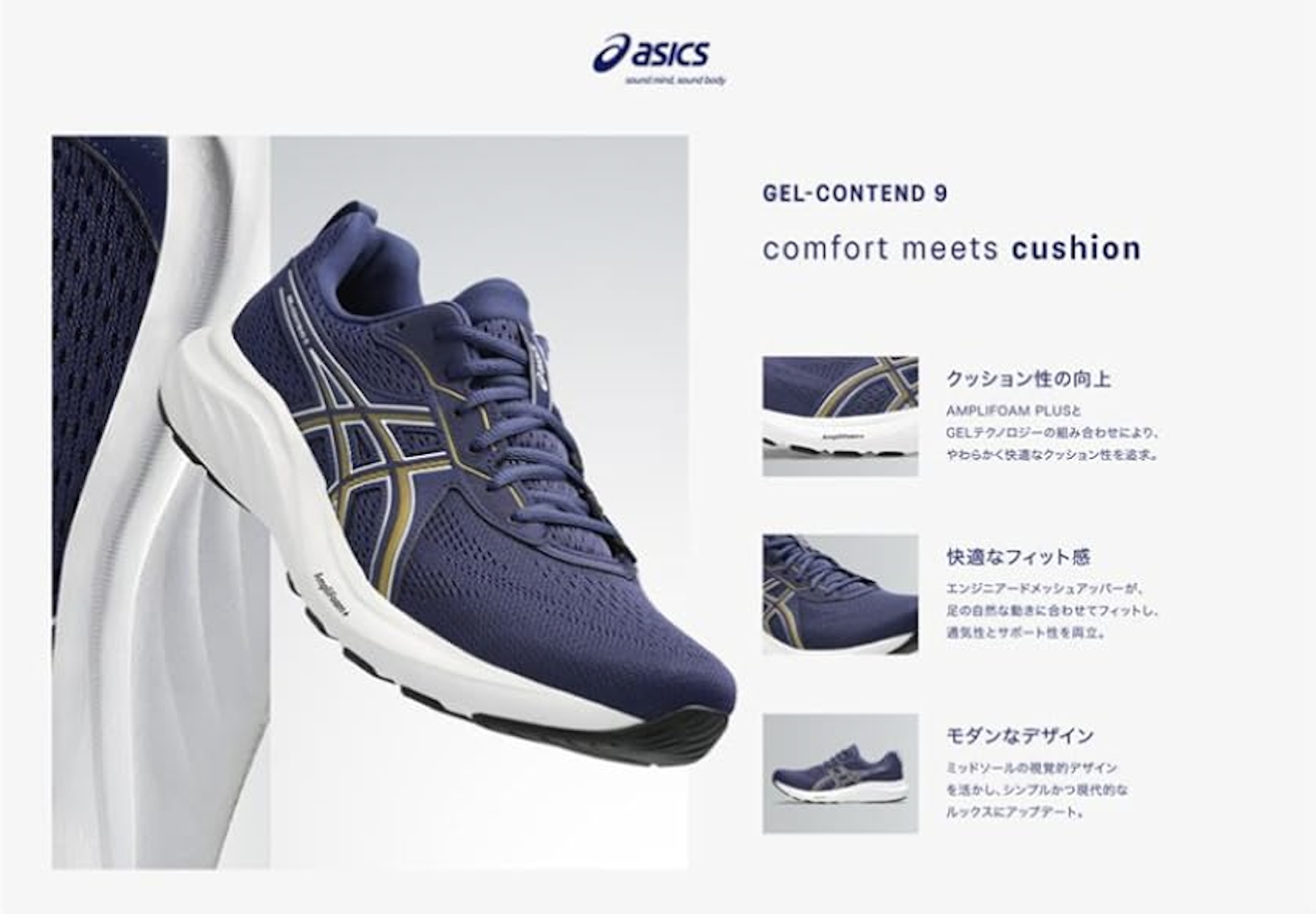 アシックスのシューズは、日本人の足型データをもとに設計されているので、抜群のフィット感で走りをサポートします。