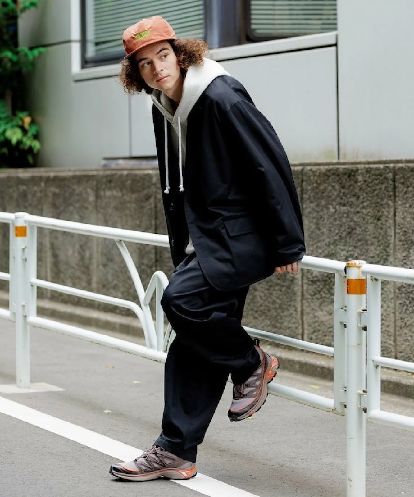 フーディー&キャップは最強のコンビ。少し浅めにかぶるとこなれ感がアップし、よりおしゃれな雰囲気を演出できます。