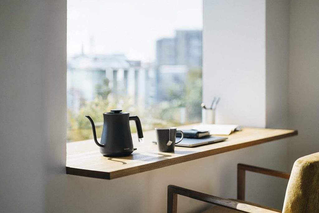 もちろんケトルとしての使いやすさも徹底的にこだわり、お湯を注ぐときの流速まで緻密に計算されています。600mlの大きさも、日常生活で使用する湯量と、ケトルを置いても邪魔にならないジャストなサイズ感で、快適な使い心地を提供してくれます。