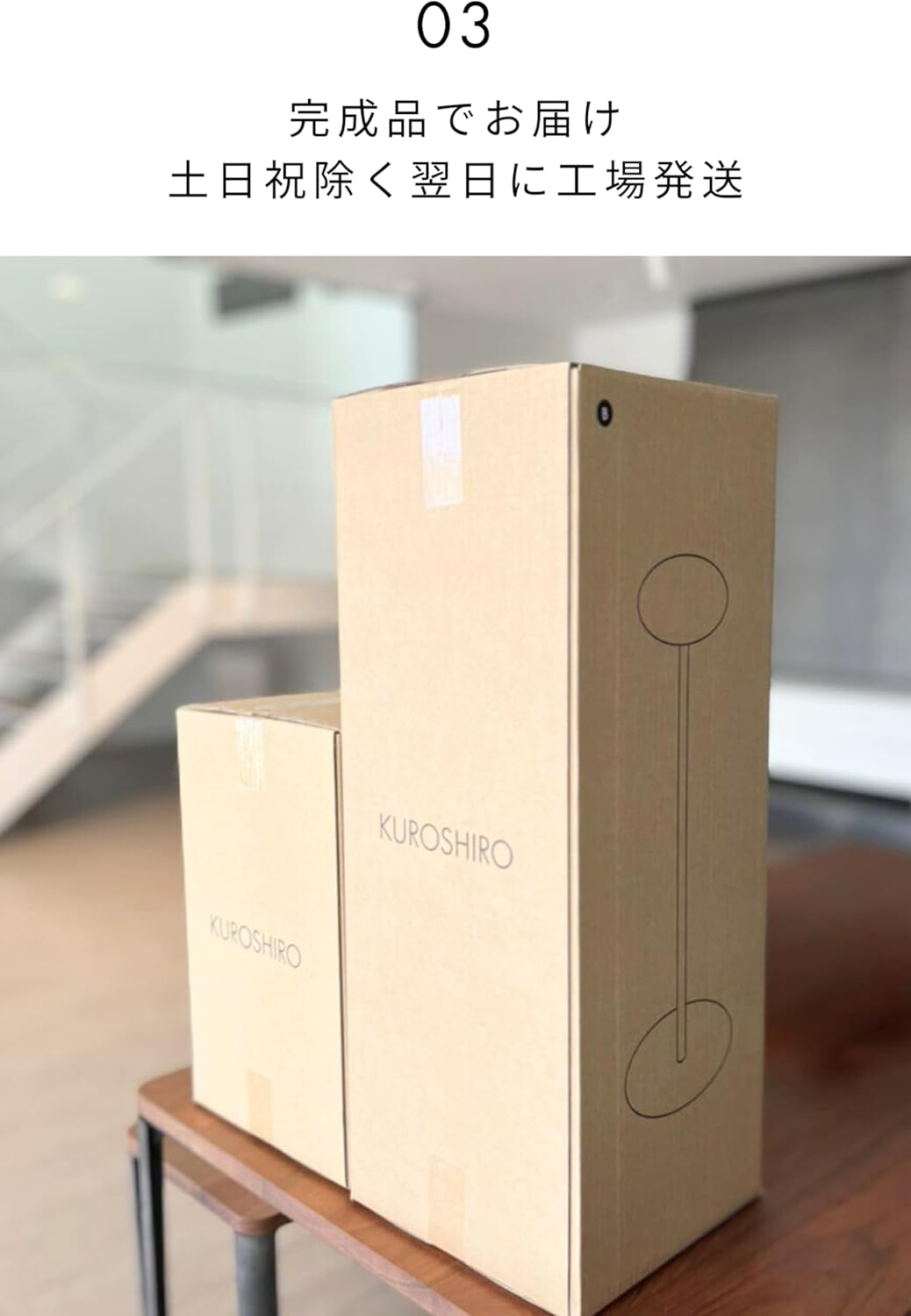 KUROSHIROのプロダクトはすべて工場直送の完成品で届きます。工具や組み立てが不要で、届いたその日からすぐに使えるのは嬉しいポイント。パッケージもシンプルなので、引っ越し祝いなどのプレゼントにも喜ばれそうです。